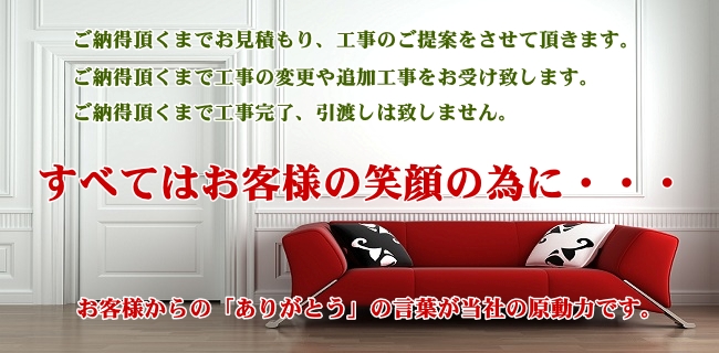 内装工事、外装工事、水回り工事と古くなったお家を快適に暮らすためのご提案をさせて頂きます。25年の工事実績と信頼により他社には負けない値段とご納得のいける工事をお約束します。小規模修繕工事から大型リフォームまで完全自社施工による責任のある工事をいたします。